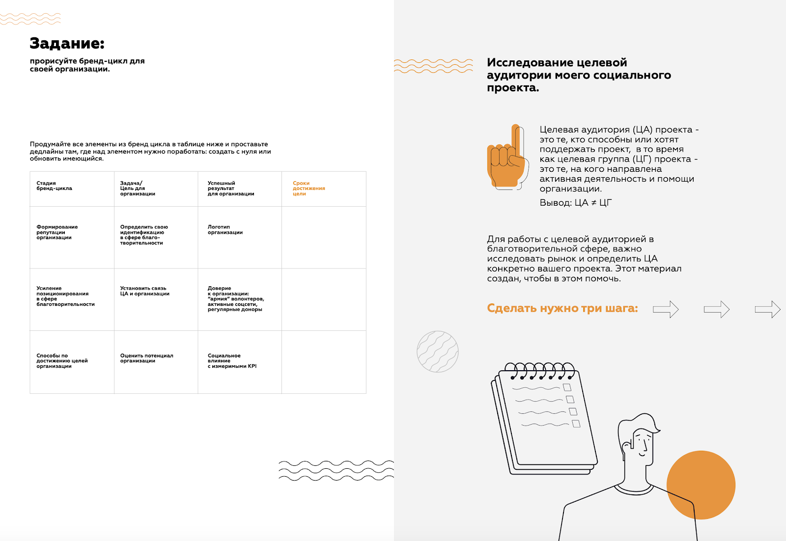 The project is all about education in charity. Pure online. Students are the organization owners or PR managers of charity funds who want to upgrade their organization. We sell here the experience of my client who founded the charity organization and successfully helped so many people all around Ukraine and Russia. At the end of my material research, I have proposed to renew the videos by making them all more stylish, comfortable to watch, and shorter. Also, I suggested creating worksheets for students, so they would have smth material above the whole online course and smth that they can share with the whole team. I found it is valuable and a good marketing tool as well. Besides, I put forward 3 variants for presentation design that were used in the video, as well as in course webinars.